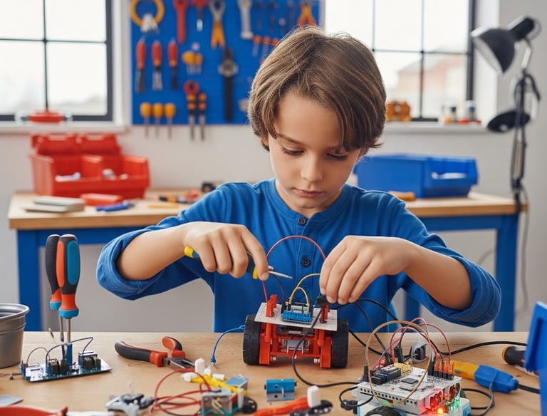 Ignite your child's engineering spirit with our Robotics course! They'll dive into hands-on building, learn essential coding, and spark their creativity by designing and programming their own robots, preparing them for the future of technology.